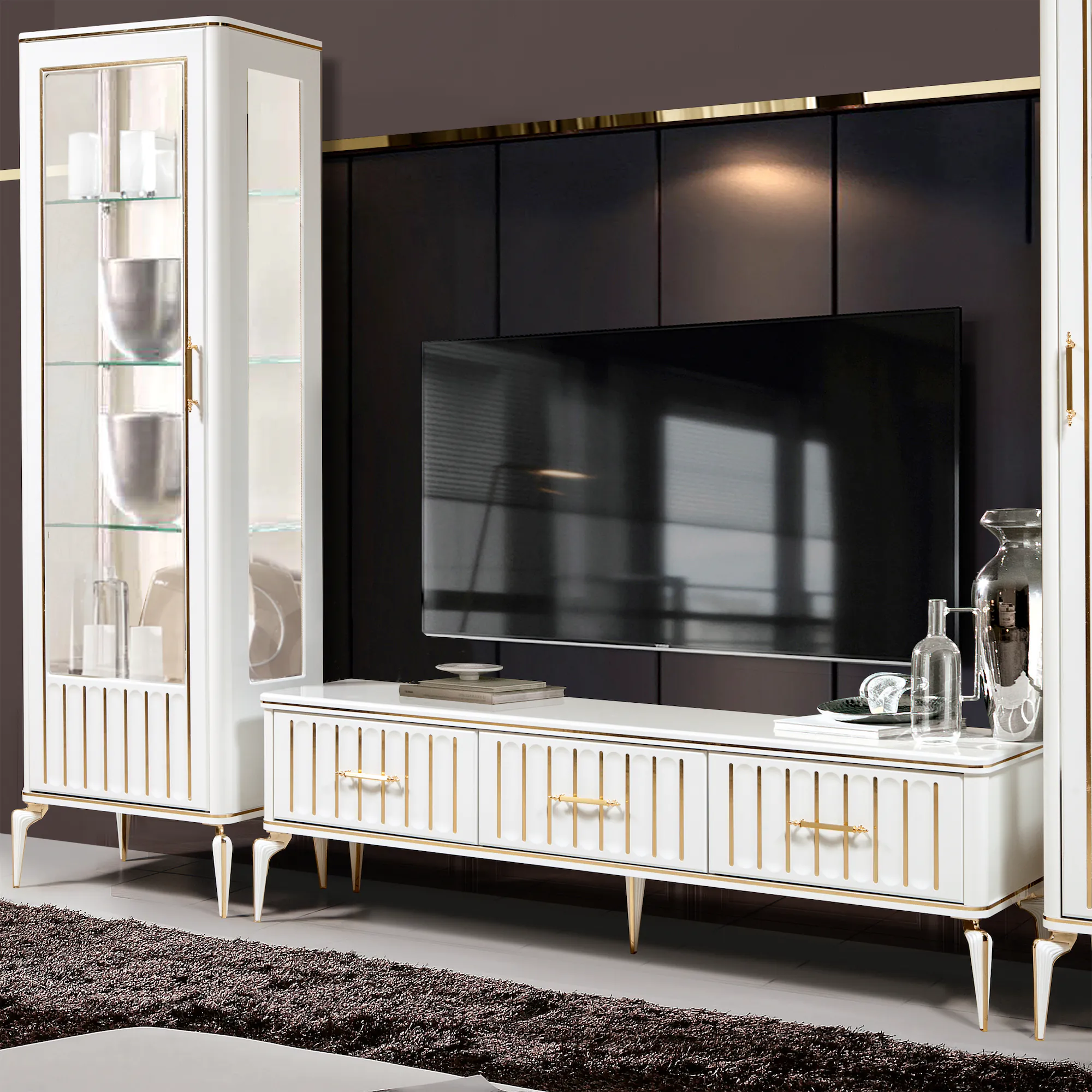 Шкаф с витриной В1584 x Ш1111 x Г446 Шкаф с витриной 1дв. В2064 x Ш676 x Г446 Зеркало В800 x Ш1350 x Г22Тумба В519 x Ш1786 x Г450Тумба ТВ В519 x Ш1786 x Г450Стол обеденный В756 x Ш1860(2360) x Г940