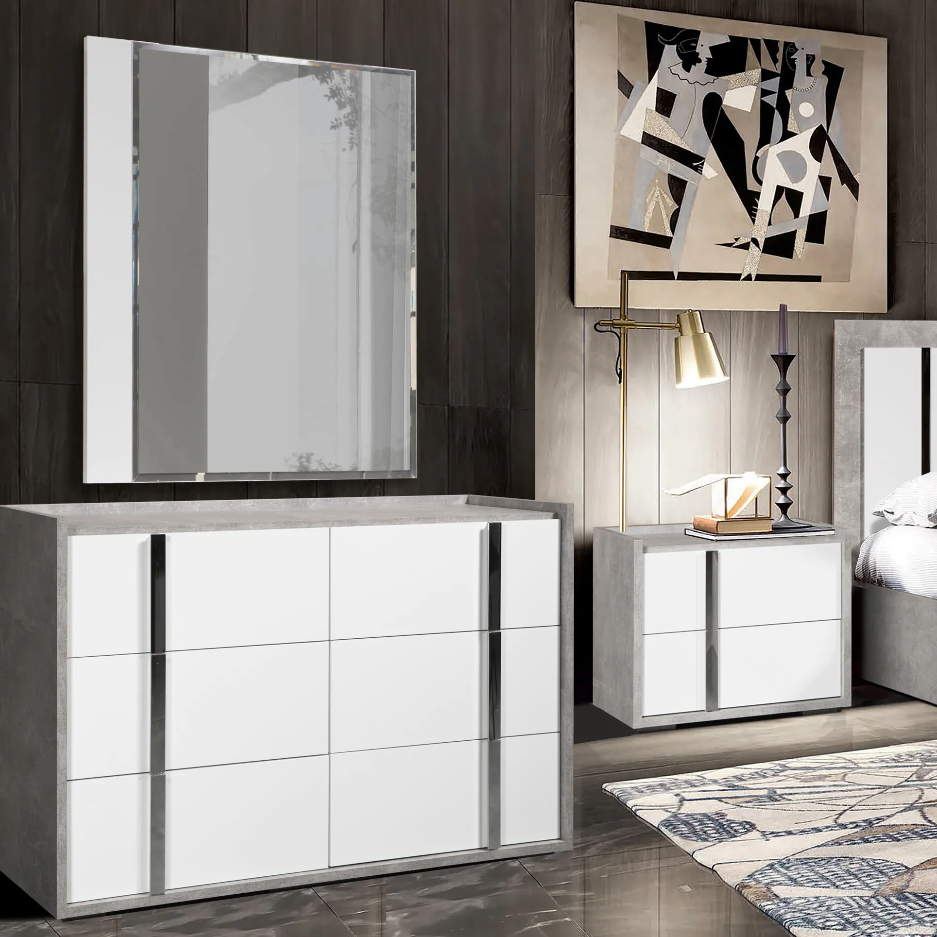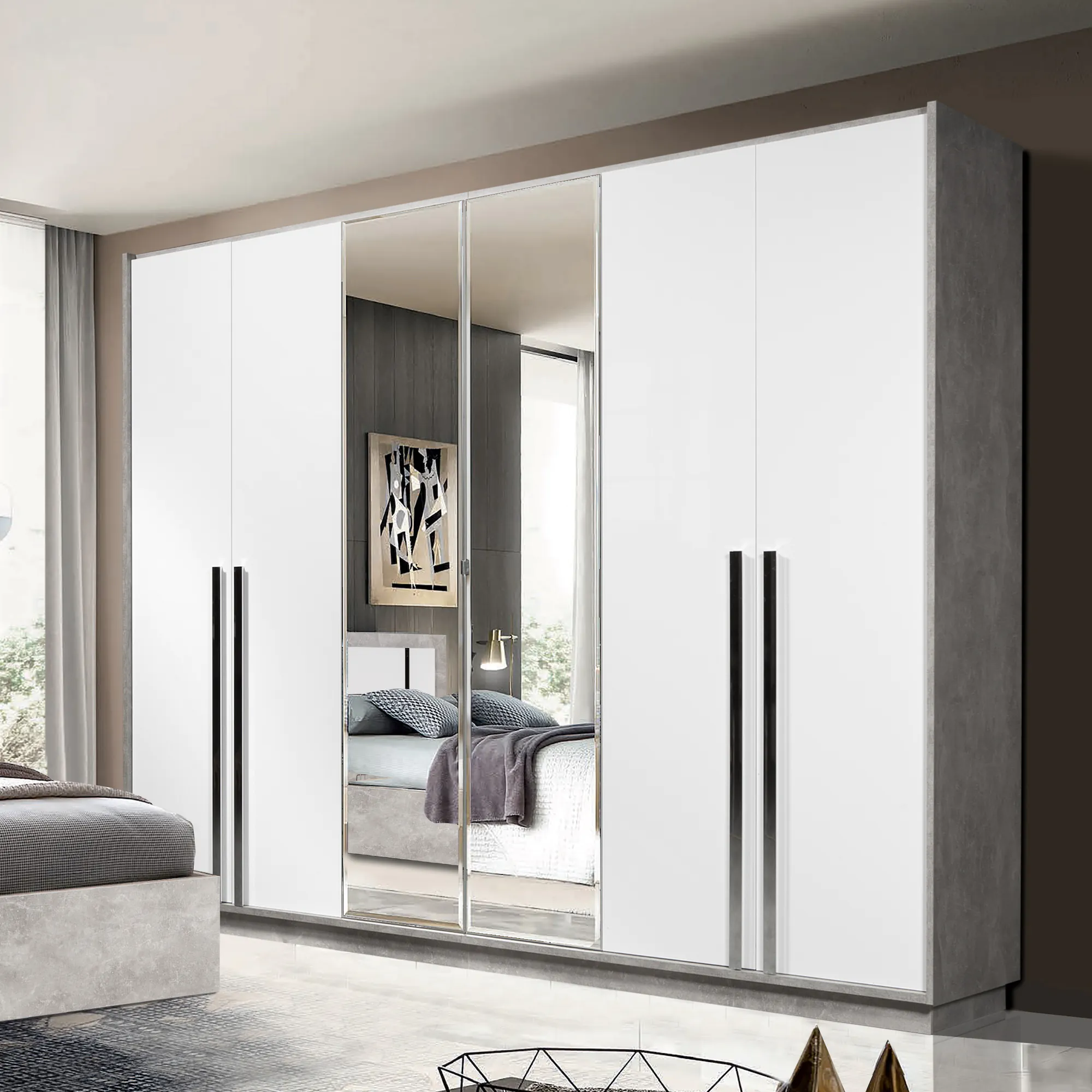 Шкаф 6 дв. В2192 х Ш2704 х Г615Шкаф 4 дв. В2192 х Ш2704 х Г615 Кровать 1,8 В1286 х Ш2000 х Г2081с под. механизмом(матрас 1800 х 2000) Зеркало В900 х Ш800 х Г22Комод В862 х Ш1302 х Г470Тумба прикроватная В515 х Ш598 х Г420